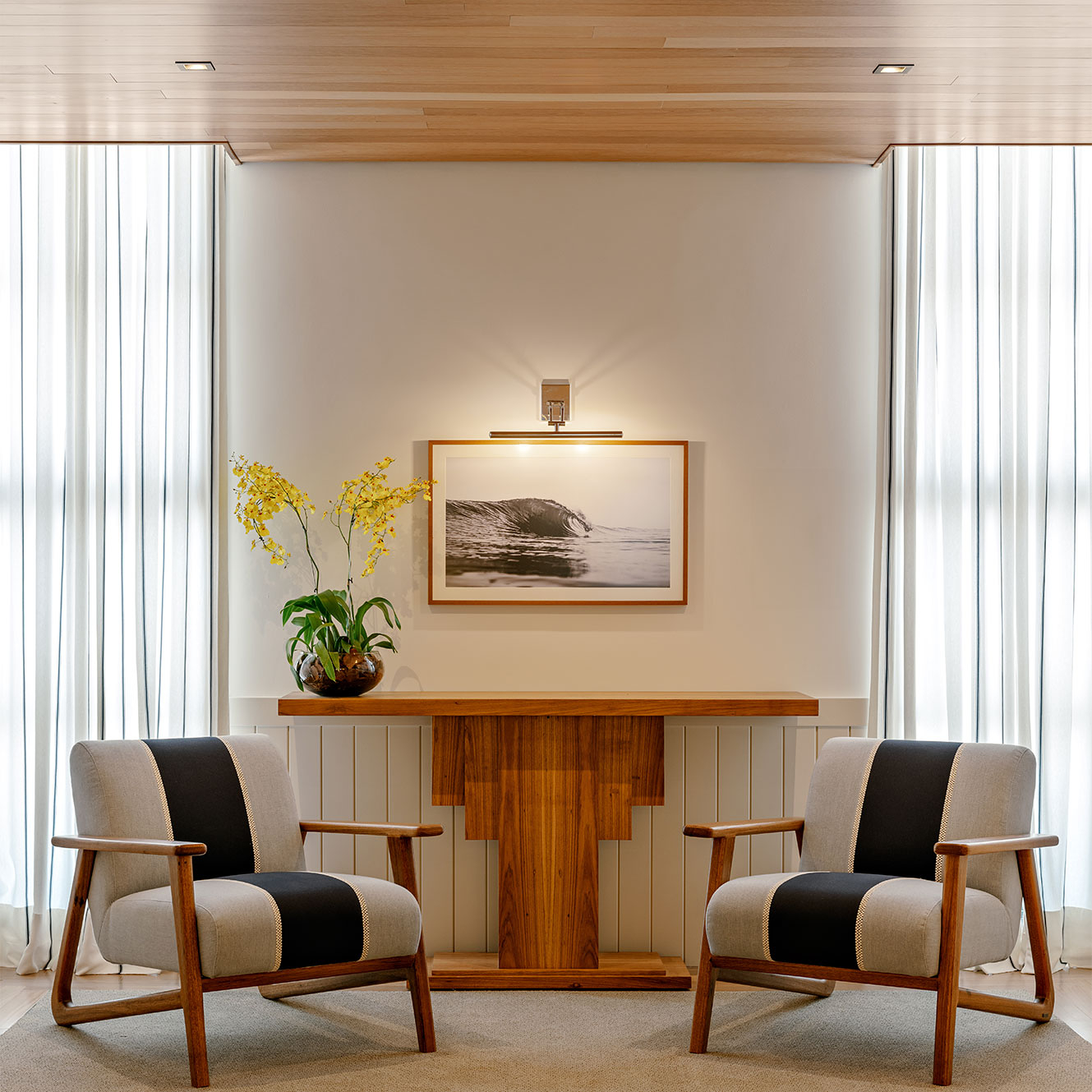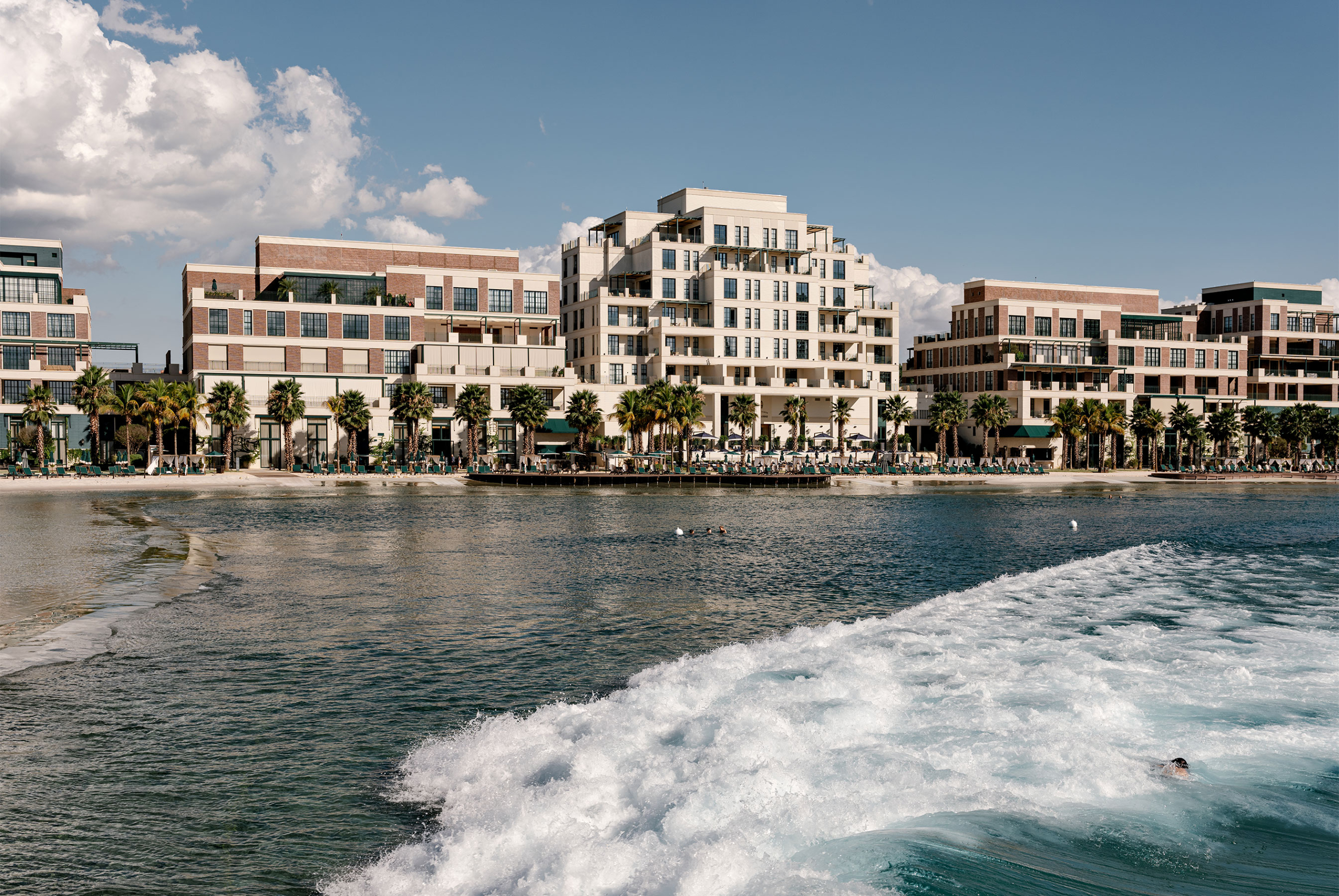 No Boa Vista Surf Lodge, a arquitetura estabelece uma mediação precisa entre paisagem, esporte e experiência. Implantado no coração do Boa Vista Village, em Porto Feliz, o projeto organiza o conjunto como uma sequência de volumes baixos e abertos, favorecendo circulação fluida, integração visual e uma relação contínua com o exterior. A piscina de ondas atua como eixo estruturador do espaço e da vivência coletiva, mais do que como atração isolada. A linguagem arquitetônica privilegia proporções equilibradas, materiais naturais e uma leitura contemporânea que valoriza o tempo lento do lugar. Varandas generosas, transparências controladas e áreas de convivência abertas reforçam a ideia de observação e encontro, elementos centrais na cultura do surfe, criando um refúgio que transcende o modelo tradicional de hotelaria. Em diálogo direto com os interiores assinados por Sig Bergamin & Murilo Lomas, a atmosfera do lodge é definida por uma paleta de azuis suaves, off-whites e madeira natural, evocando um litoral imaginado no interior paulista. A referência ao imaginário dos Hamptons surge de forma sensível, não como citação literal, mas como afinidade estética marcada por leveza, elegância e informalidade sofisticada. Fotografias vintage de surfe e superfícies claras reforçam esse clima de frescor e atemporalidade. O resultado é um conjunto coeso, onde arquitetura, interiores e paisagem operam em sintonia para criar uma experiência que é simultaneamente esportiva, contemplativa e refinada. No Boa Vista Surf Lodge, o espaço não se impõe: ele conduz, acolhe e permanece na memória.